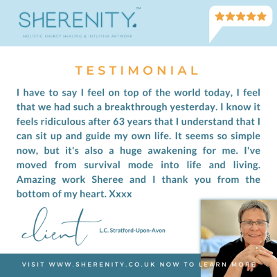 “As well as Energy Healing, Sheree has also performed Distant Healings for my family with very positive results. I couldn’t recommend Sheree enough! She puts her heart in everything she does and the results are Divine ! Thank you Sheree!” Monica, Kings Heath